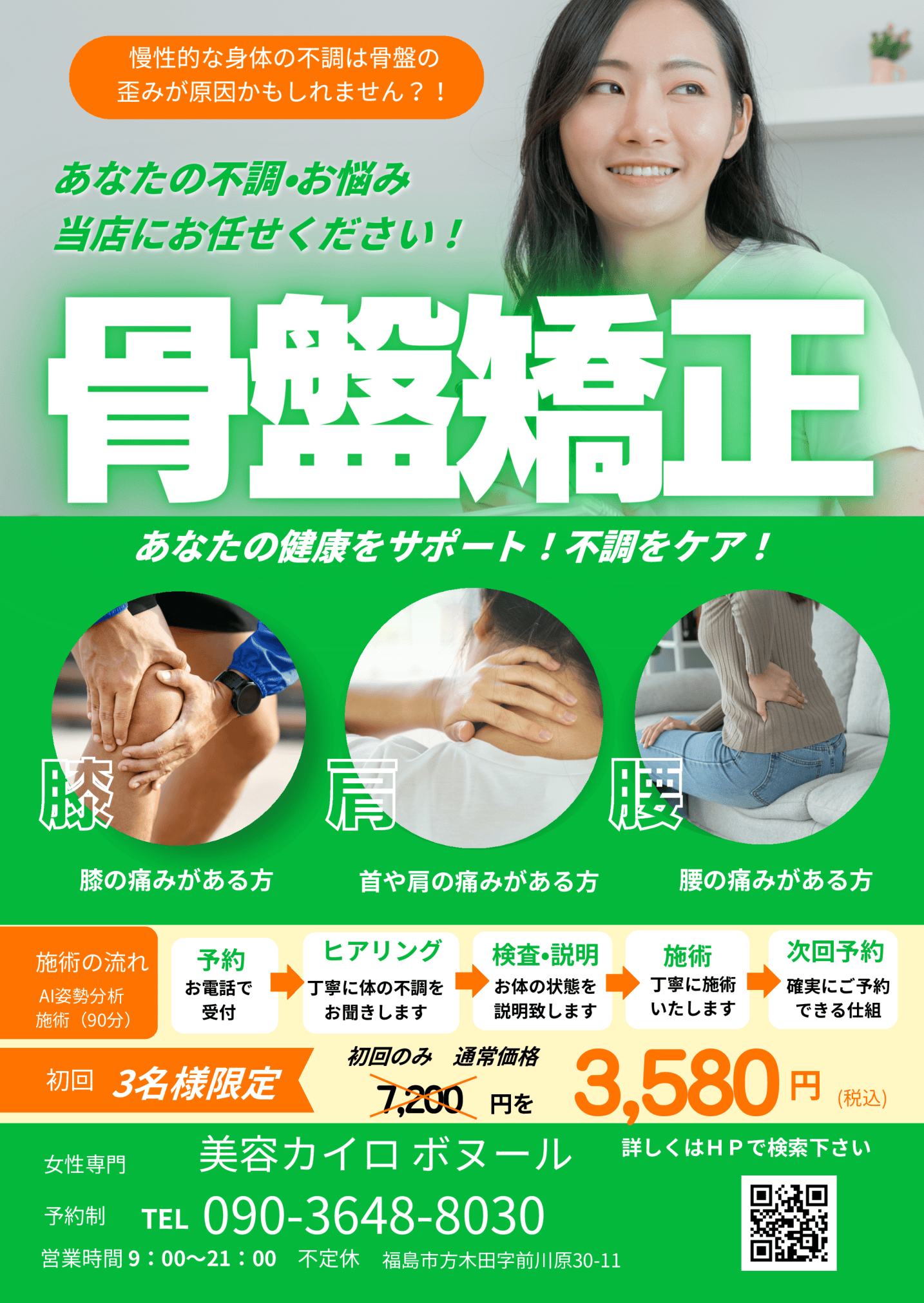 女性のプロポーションを整えるには、骨と筋肉という“体の土台”が大切です。骨格のゆがみは、脂肪の蓄積・むくみ・たるみ・肌荒れなど、美の悩みを引き起こす原因に。